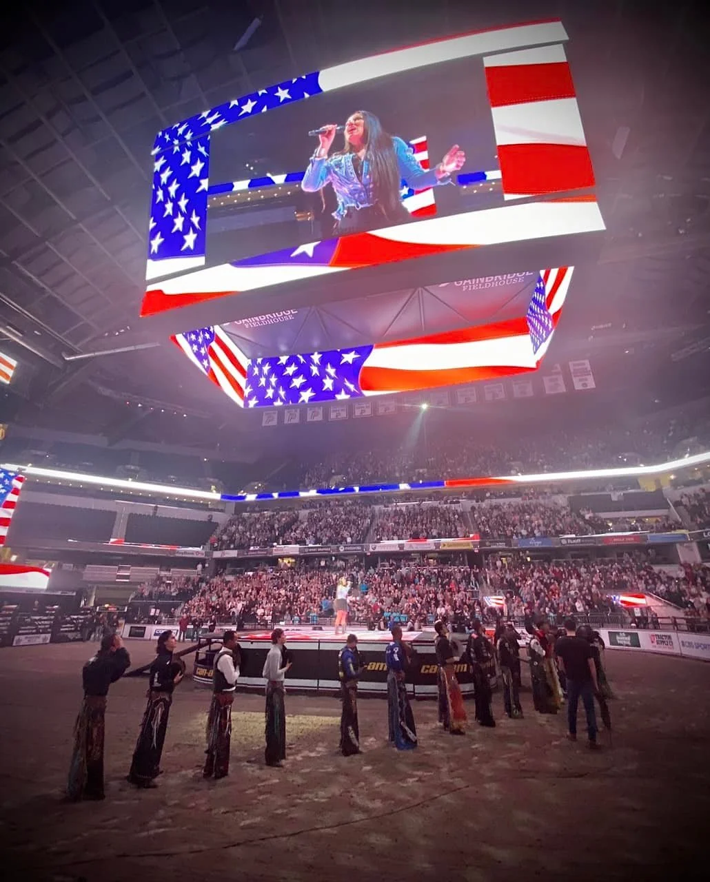 With my boots on, I walked into the New Year, with my heart racing, through the dust and up the the ramp onto the dead center of a 20,000 seated arena and stomped my heels right on top of a rotating beast. Surrounded by gritty Cowboys in fringe chaps and wild bulls, and an anticipating sea of PBR fans, production crew, cameras, lights and pyro in every angle. With my eyes towards the light, my hands towards heaven, The US flag lit up red, white and blue across the stadium and as every Cowboy bent a knee we entered in with a reverent prayer to the King. My heart filled with confidence as I humbly raised the mic in my hand to sing with such great privilege, the National Anthem.